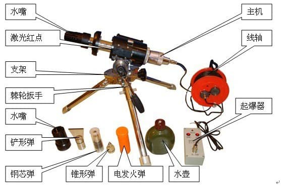 发布时间:2017-05-27 广东安盾集团整理发布,转载请注明出处水炮枪,又名baozha物解体器是一种最新研制的、目前威力最大的、配有多弹种的baozha物销毁器。用于破坏各种简易包装的、不宜由人直接拆除的危险品和baozha品。销毁器由枪身、支架、电发火zhuangzhi组成。可根据不同情况发射水、金属弹等不同弹种。工作原理是当后端的弹药被点燃后,产生高压,推动前端的水形成高压水流高速的射向baozha物,baozha物的外包装及内部组件在高压水流下解体。整套产品:技术先进,结构合理,威力大,操作方便,使用安全。
